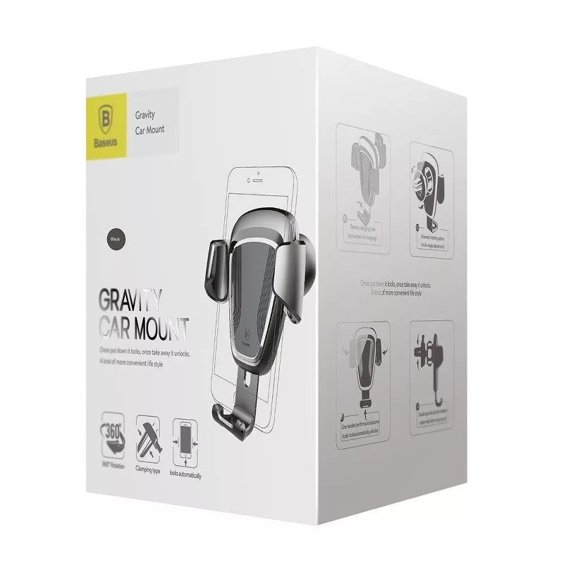 Gravitational Baseus telefontartó, az autó szellőzőrácsára rögzíthető.