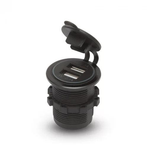 Autós szivargyújtó helyére beépíthető USB aljzat. Használatával nincs szükség a szivargyújtóba dugható USB adapterre, az egész szivargyújtó aljzat cserélhető, ezáltal megelőzhetőek az esetleges érintkezési hibák. A kék világítás jelzi, hogy feszültség alatt van az aljzat, továbbá sötétben elősegíti az USB kábel csatlakoztatását. A gumi zárókupak megakadályozza, hogy por, szennyeződés jusson az USB portokba, valamint használaton kívül a zöld LED világítást eltakarja. Ez a zárókupak tetszés szerint eltávolítható.