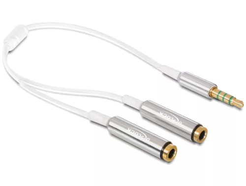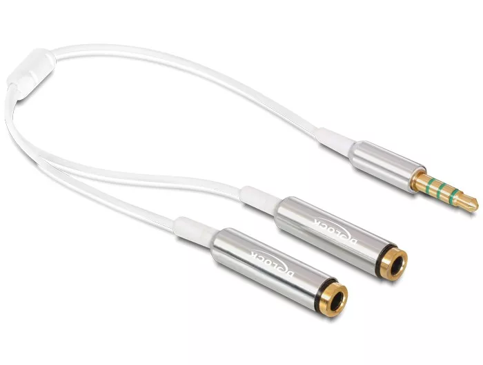 Ez a Delock által gyártott sztereó audió jack-kábel iPhone, iPod, iPad stb. jack-aljzatához csatlakoztatható, így két sztereó jack-aljzatot kaphat. Így két személy is egyszerűen hallgathat zenét vagy hasonlót fülhallgatón.