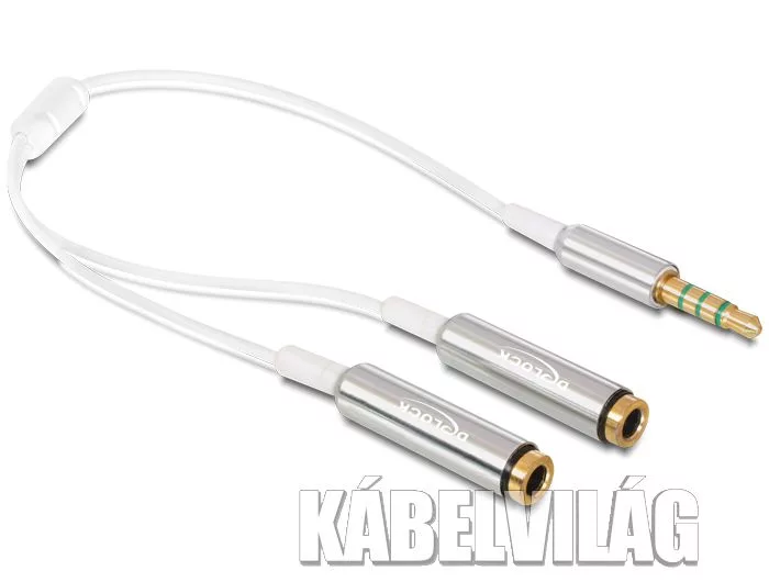 Delock 3.5 mm 4 pin Jack elosztó kábel 25cm, fehér (65576)