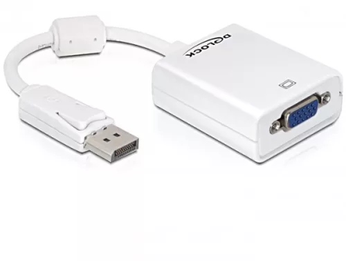 Ez a fehér színű adapter lehetővé teszi, hogy például egy VGA-monitort csatlakoztasson egy szabad Displayport-csatolón keresztül.
