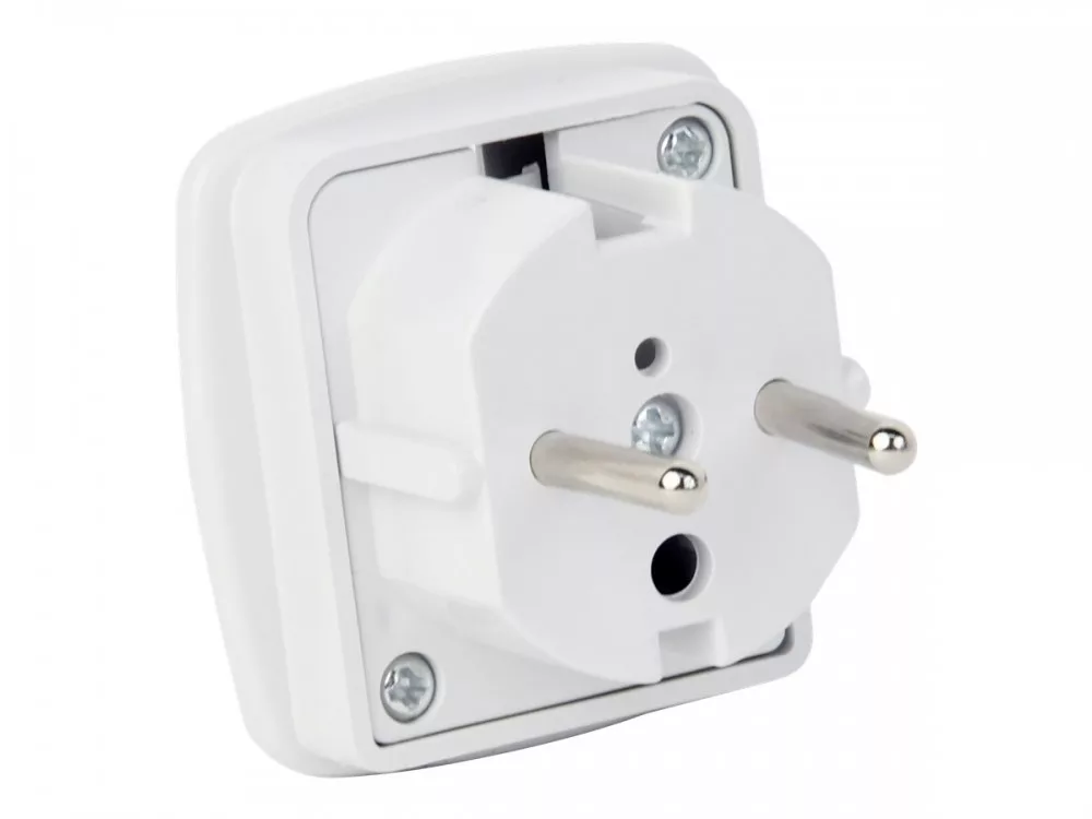 Konnektor átalakító, melynek segítségével angol konnektorhoz használt készülékeket tudunk európai hálózatról használni.