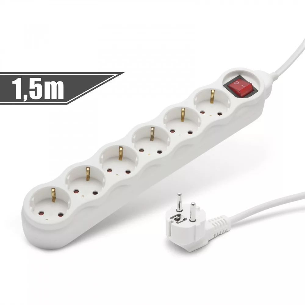 6 utas hálózati elosztó, kapcsolóval, 1.5 méteres kábellel.