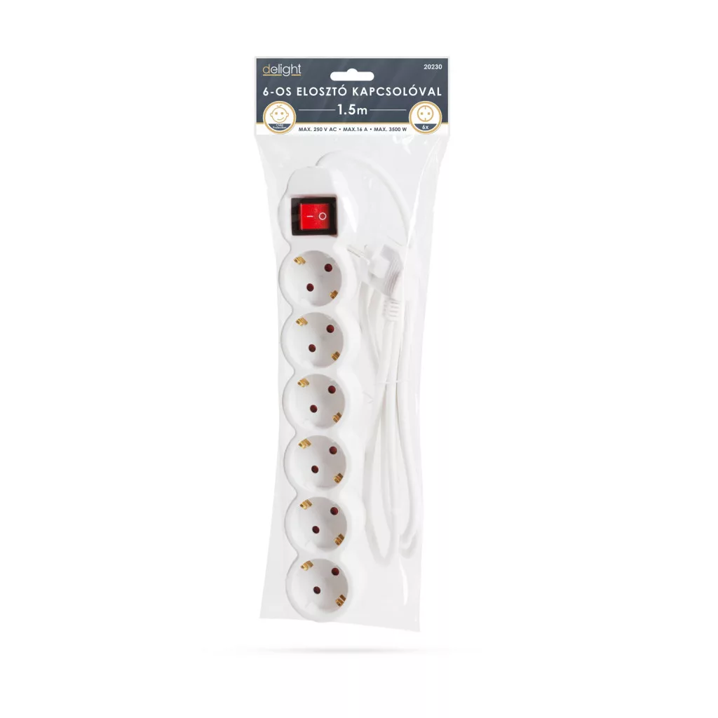 Delight hálózati 6-os elosztó kapcsolóval 1.5m (20230)
