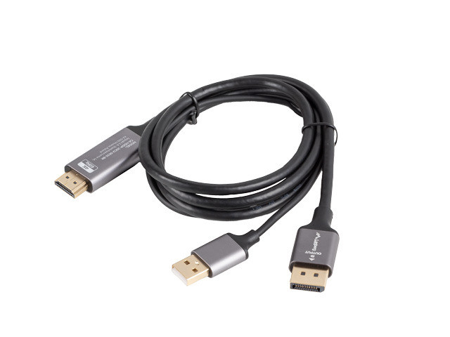 A kábel beépített elektronikus HDMI -> DP jelátalakítóval rendelkezik.