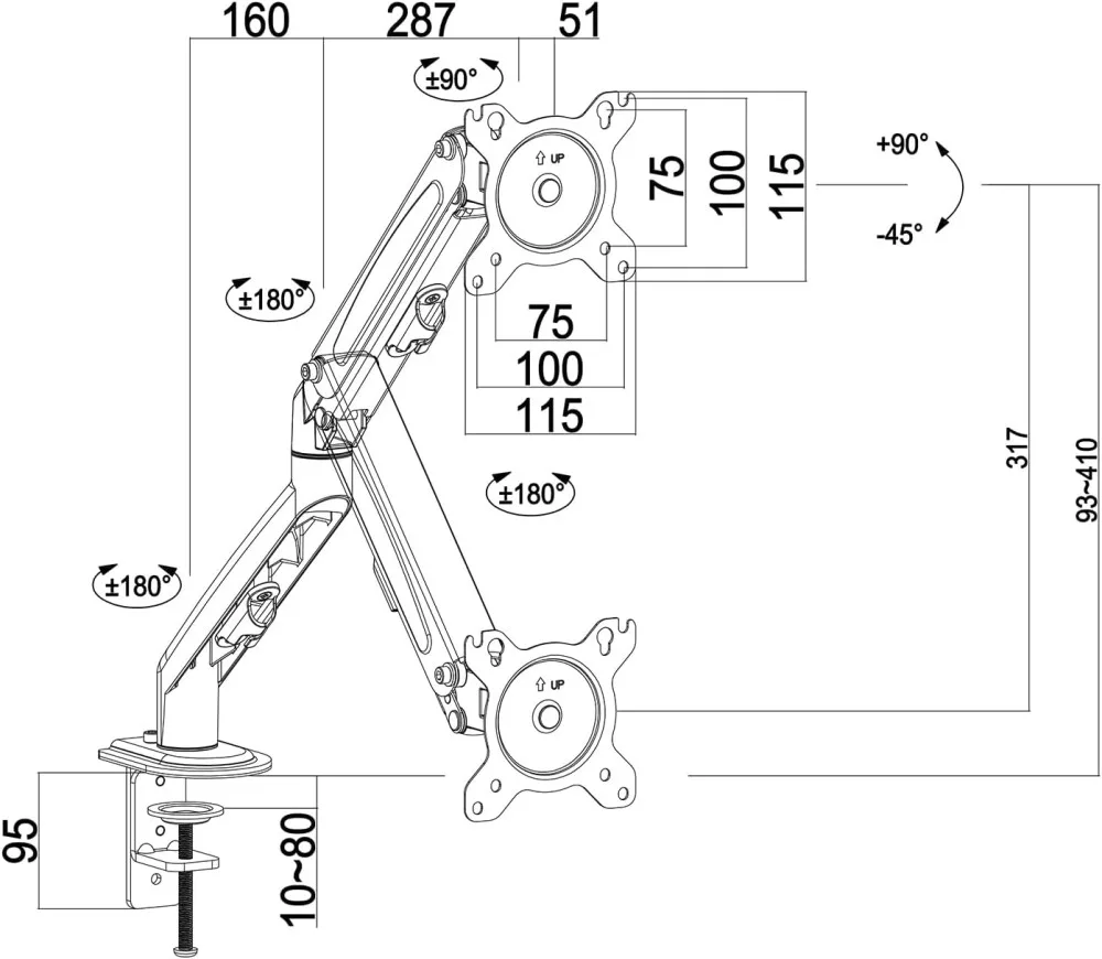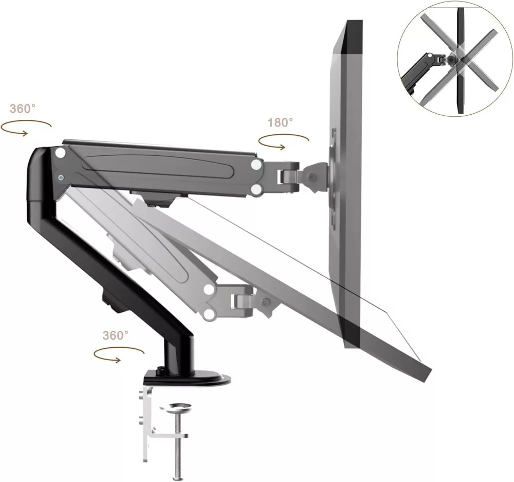 180°-ban forgatható, +90°/-45°-ban dönthető asztali monitor állvány.