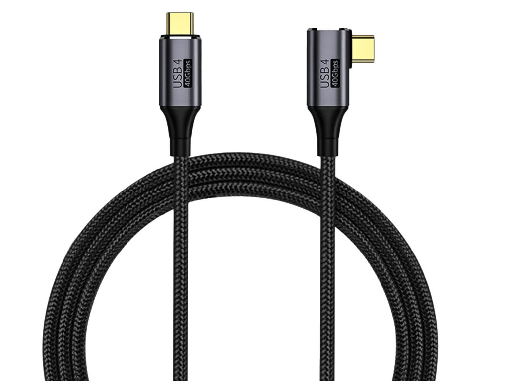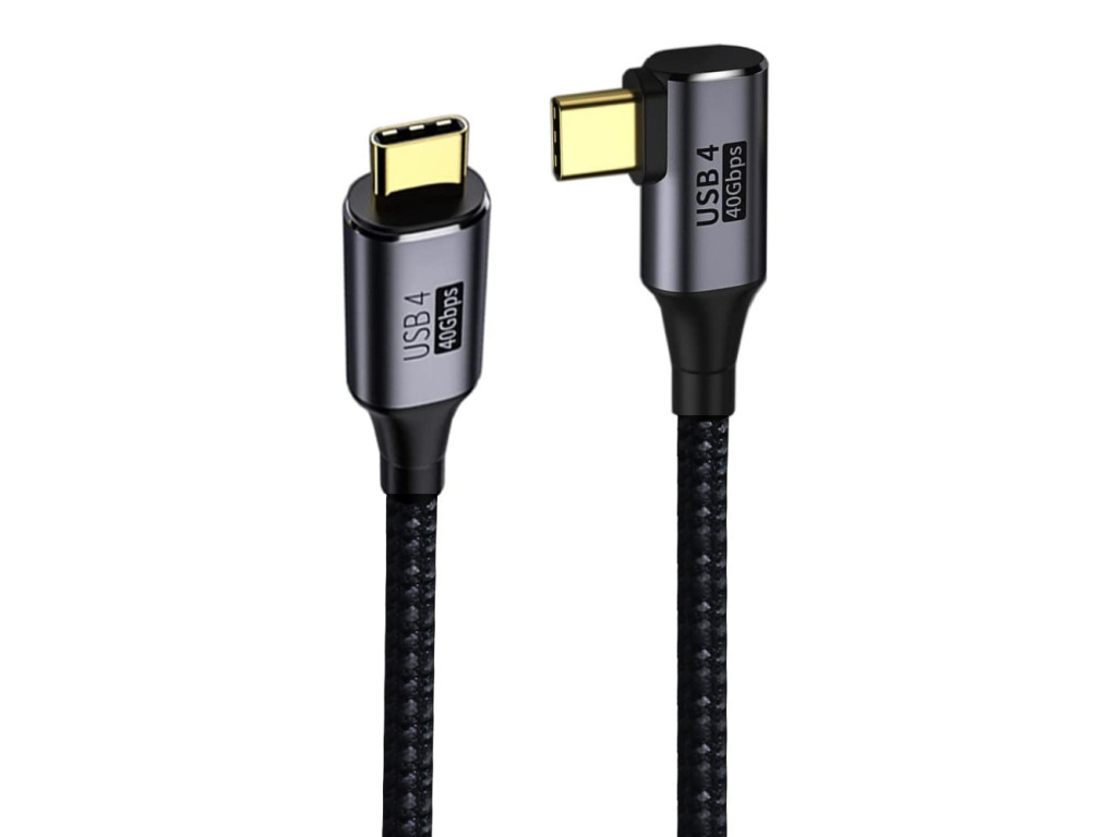 Praktikus hajlított fejű USB C Gen 3x2 40 Gbps 8K @ 60Hz 100W Thunderbolt 3-as kábel.
