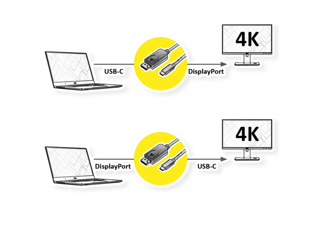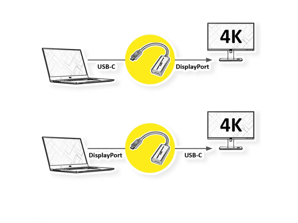 Kétirányú kábeladapter - MINDKÉT jelirányban működik USB Type-C és DisplayPort csatlakozókkal