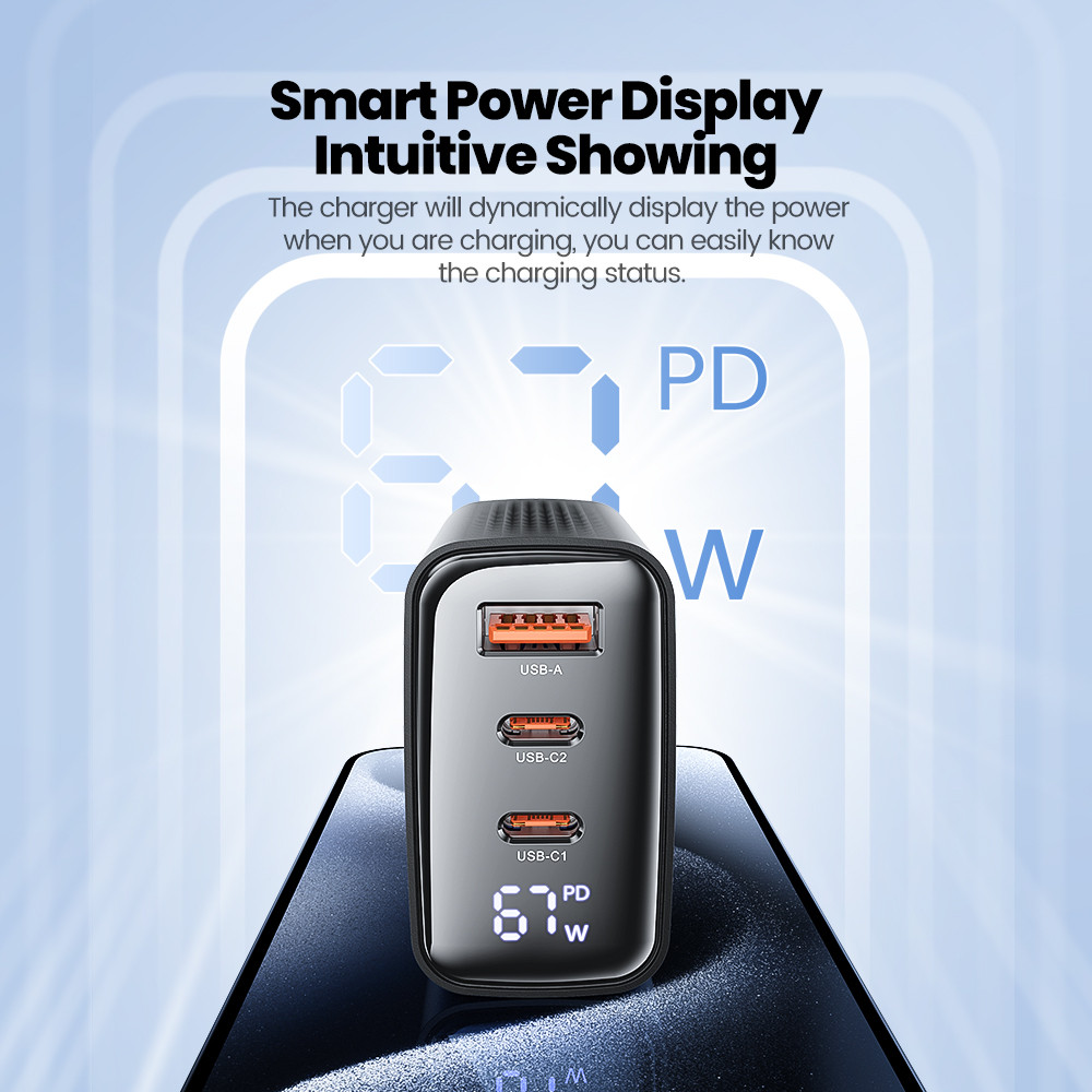 Toocki USB + 2db USB C 67W GaN gyorstöltő adapter (TCT67-XRB01)
