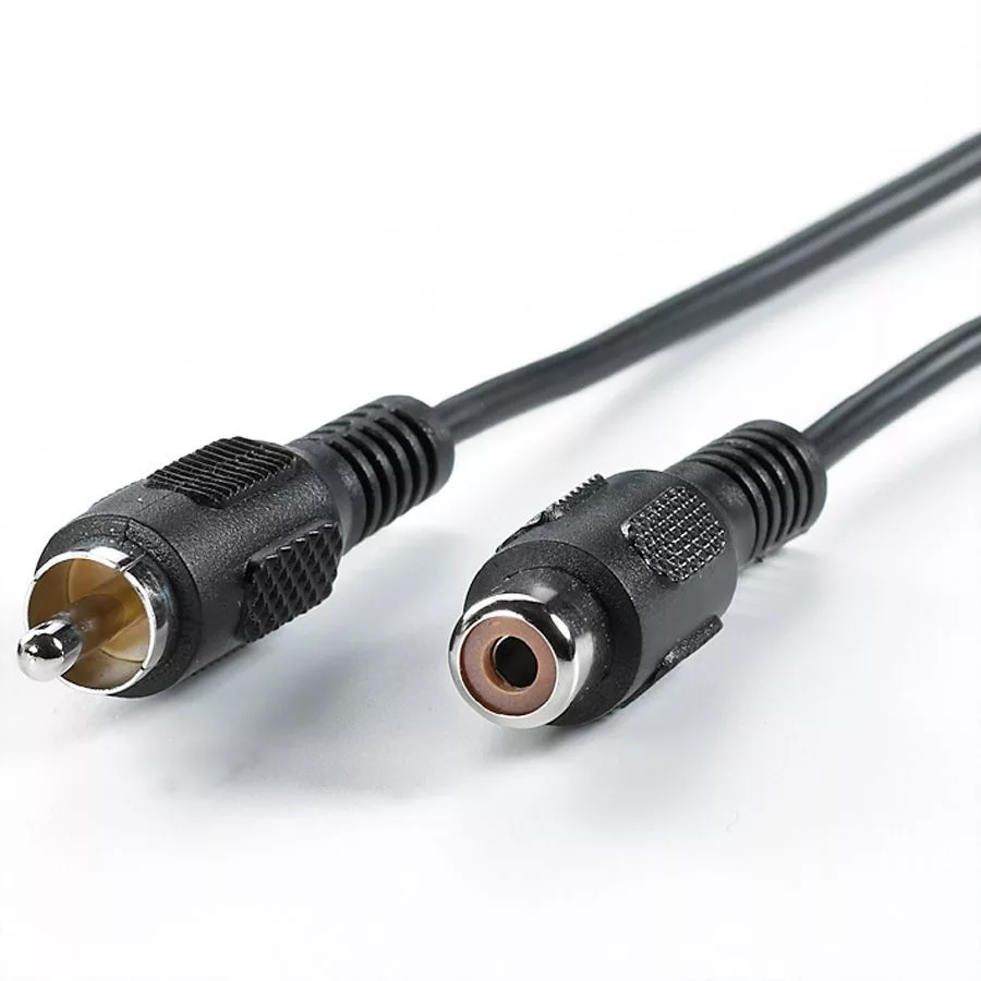 5 méteres Audio/video hosszabbító kábel, egyik végén RCA dugó, másik végén RCA aljzat.